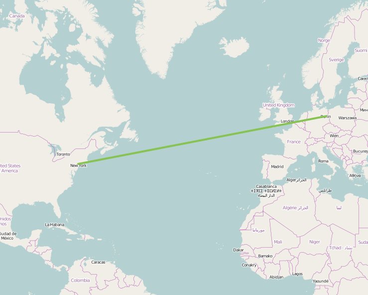 As you can see, within the planar coordinate system, a line would be drawn straight from New York to Berlin, resulting in not so accurate calculation results. As we all know the earth is not plane, therefore the spherical coordinate system takes that into account and calculates distances on a sphere, leading to more accurate results. Hopefully you don’t use a planar system to calculate the fuel for your airplane. ;-) In case of pure performance, geometry-based data will be faster, since the calculations are easier.