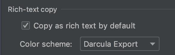 Years ago, IntelliJ/JetBrains' IDEs introduces a setting called "Rich Text Copy" (Editor -> General). In there, you can set a theme which is used for exporting. For a faster exporting, I created a clone of Darcula and changed the following things:
