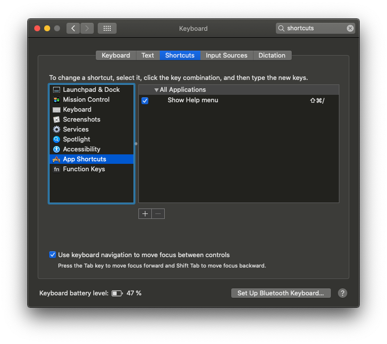 b) Then choose the Shortcuts tab and select "App Shortcuts"