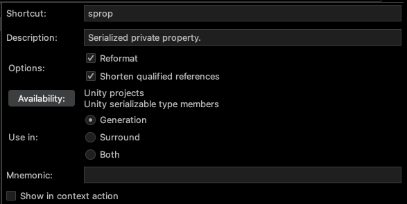 You can add a live template for creating serialized properties using JetBrains Rider.
